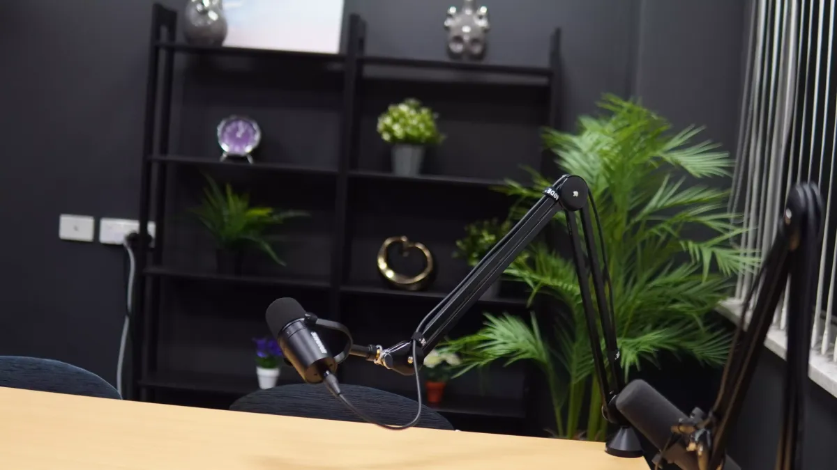 Broadcast‑quality audio – premium microphones and acoustic treatment for clear, warm sound.